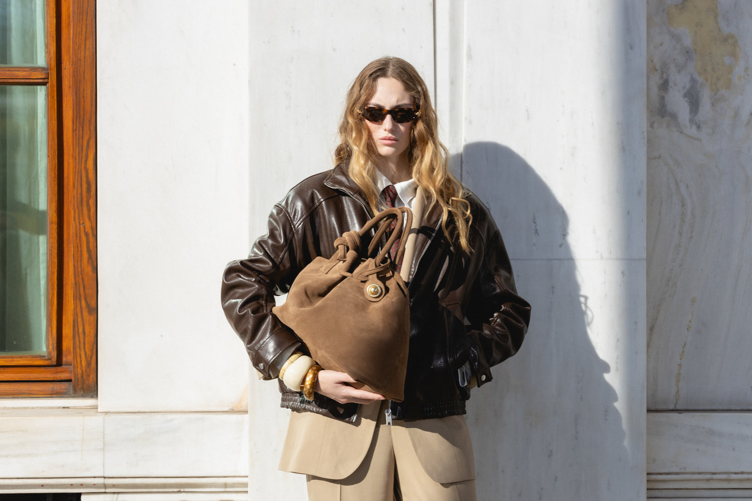 All Kooreloo creations have a secret; when opened, an aura of dynamism emanates from each bag. A rich inner world emits a sparkling personality! The inspiration behind our lining derives from the energy of the imposing posture of the statue of Athena and the way it is manifested in the dynamism of women in today’s world.